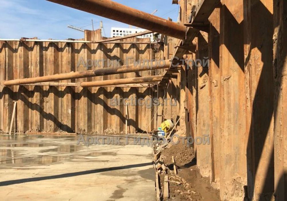 Устройство шпунтового ограждения из шпунта Ларсена методом вибропогружения на объекте строительства административного здания в г. Москва, ул. Байкальская, 42.